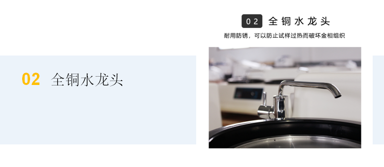 本機帶有冷卻裝置,可以在研磨拋光時對試樣進行冷卻,以防止因試樣過熱而破壞金相組織。該機使用方便、安全可靠,是工廠、科研單位以及大專院校實驗室的理想制樣設備。