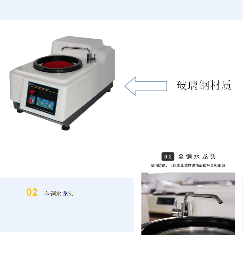MP-160型磨拋機為單盤臺式機,適用于對金相試樣進行粗磨、精磨和拋光操作。